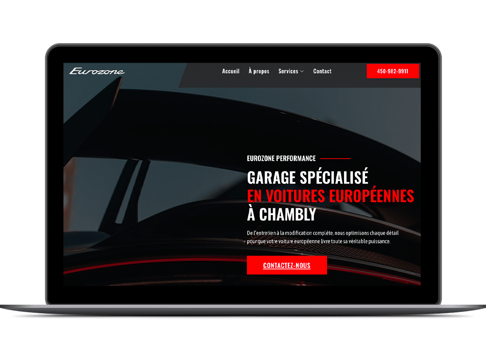 Design of the website for Eurozone Performance, an automotive garage specializing in European cars in Chambly. A project by Agenda Familial focused on trust, performance and the customer experience.